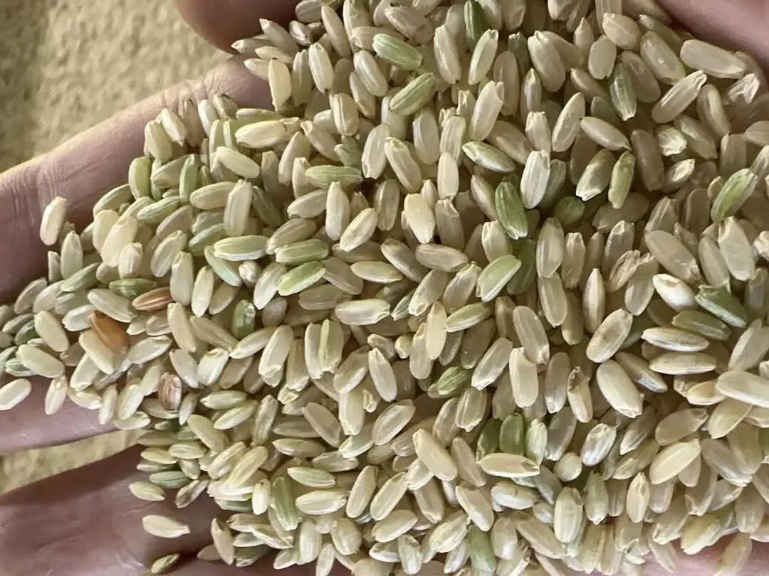 砻谷“脱外套”。干净的稻谷进入砻谷机,将稻谷坚硬的稻壳剥离,就得到了淡黄色的糙米。随后再通过重力筛对糙米进行进一步筛选。