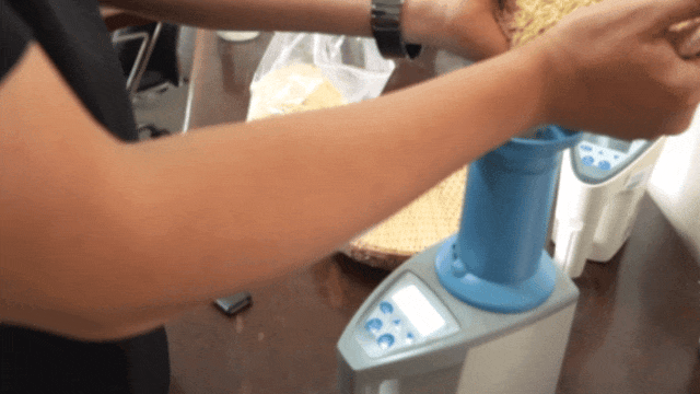 经过约一周的时间,突破了层层“考验”的精品大米,通过自动计量装置被分装到真空包装中,收拾收拾准备“出道”啦。