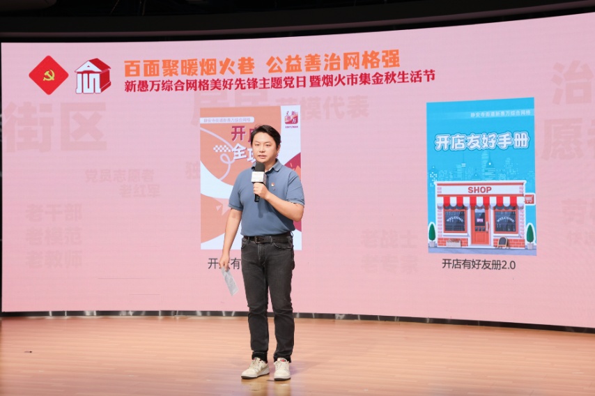 新愚万综合网格9个公益项目正式发布,涵盖红色教育、食品安全、消防安全、医疗服务、影像支持、环境提升、街区公益、市集运营、商户服务等多个领域。这些项目既有综合网格的自驱发力,也有共建单位的倾情助力,每一个项目都汇聚着各方对综合网格的支持和期盼。新愚万综合网格《开店友好手册2.0》也在活动现场同步发布,将更好地服务街区小店,既帮助商户解决“开业难题”,也能助力“持续经营”,促进多方协作。