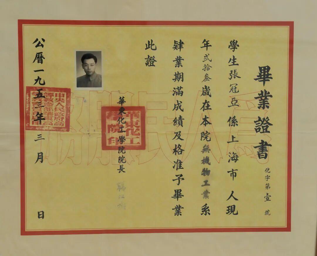 作为新中国第一所以化工特色闻名的高等学府,华理人坚持以国家需求为导向,不畏艰险,勇挑重担。“这是我校首张本科毕业证。”华东理工大学档案馆副馆长段义严指着一页泛黄的纸告诉青年报·青春上海记者。1953年3月,因国家建设急需专业人才,11名无机物工学专业的学生提前半年毕业,其中的张冠亚,幸运地成为“化字第壹号”毕业证的拥有者。这批怀揣着梦想和知识的年轻人,奔赴建设前线,成为新中国化工事业的中坚力量。
