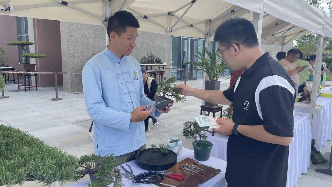 今年9月是我国首个科普月,为了促进科普互动与作品展示交流,现场还以海派盆景技艺的非遗属性为核心,设立了科普摊位,邀请青年盆景师在摊位上展示小微盆景和海派盆景技艺,与市民游客科普互动,让大家了解海派盆景的养护方式,也将海派盆景技艺推广到更多家庭园艺。