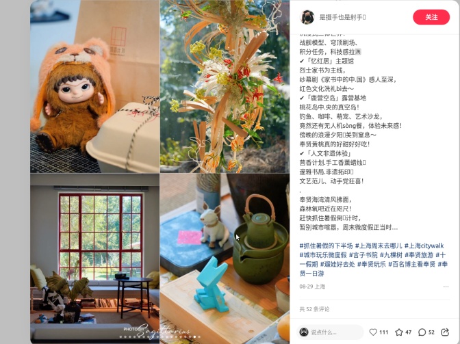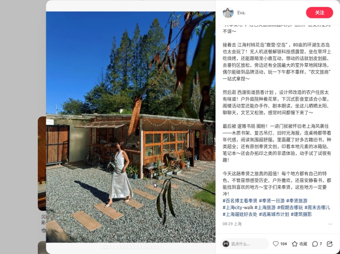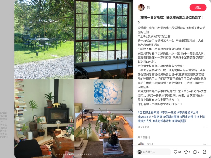 近期举办的“百名博主看奉贤”活动, 让一众网红大V用镜头解锁魔都新玩法, 当其他点位还在卷颜值、拼流量时, 有个地方让见多识广的博主们纷纷沦陷, 它,就是西渡街道金港村的“茴香空间”! 今天小编就来扒一扒 这个刷爆社交媒体的宝藏地吧! 当老宅遇见设计师 茴香空间的主理人唐越,是一位在上海市中心深耕多年的建筑与室内设计师。2022年8月,她做了一个超酷的决定:离开玻璃幕大楼,转身走向乡村老宅! 把充满岁月痕迹的村民老宅进行“再生设计”,改造成了现在这个美到冒泡、让都市人羡慕不已的“乌托邦”——茴香空间。 村民老宅 茴香空间 这里既保留质朴的烟火气,又处处流露出现代人的精致追求。站在露台俯瞰,小桥静卧流水潺潺,古树掩映着几户人家,白墙灰瓦错落有致,每一帧都像是精心调色的ins风大片。随手一拍,氛围感直接拉满! 会呼吸的共享空间 【户外庭院·野趣与文艺的完美混搭】 一走进茴香空间, 首先映入眼帘的就是那超治愈的 户外庭院。 蜿蜒的碎石路串起整个庭院, 草坪中央支着白色遮阳伞和木质桌椅。 你可以在这儿 喝杯手冲咖啡、吃块甜点, 或者什么也不做 就听着风吹树叶发呆。 晚上搬出大长桌烧烤聚餐, 又温馨,有热闹! 最惊喜的是门边原汁原味的农家土灶厨房! 斑驳的砖墙上挂着铜锅铁铲, 柴火灶飘出焦糖色的香气, 周末主理人常常带着客人炒菜饭、做南瓜饼, 烟火气里全是小时候的味道~ 【室内空间·承包你的24小时文艺生活】 室内更是别有洞天 简直是“空间魔法”的终极展示! 200㎡的场地被切割成N个惊喜盒子: 在会客厅,可以和朋友谈天说地,上个课开个派对,分享生活中的小确幸。 下沉式影音空间就像个私人小影院,拉上窗帘,窝在柔软的沙发里,沉浸在精彩的电影世界里,简直不要太爽。 阁楼活动室更是充满惊喜,在这儿可以尽情释放自己的创意,看看书、搞点小手工,或者来一场刺激的桌游大战。 不管是想在这儿安安静静地学习工作,还是热热闹闹地搞个派对,茴香都能满足你! 活动界的天花板 别以为茴香空间只是网红打卡地,人家可是正儿八经的“文化枢纽站”!茴香工作室联合上海各路艺术大咖和文化团体,不定期举办各种超有趣的文化活动。 手作爱好者? 来这玩皮具DIY、学插花编织; 文艺青年? 音乐会、艺术展、诗歌围读,气质不凡; 吃货请注意! 烧烤烘焙+下午茶派对,嘴巴从来没寂寞过; 社交牛人? 剧本杀、箫乐沙龙、演唱会,认识同频好友; 青少年? 研学体验、乡村雅思课、动物辅助疗愈师课; 甚至还有心理讲座、茶道体验…… 茴香空间更像是一个“让灵魂舞动的地方”。它不是冷冰冰的工作室,而是有温度、有烟火气的共享客厅——既能安静办公,也能放肆欢笑。 所以,有空要不要逃离钢筋森林?来茴香空间,让生活来场文艺复兴吧! 小红书搜索“茴香计划”,惊喜在路上~ 贴心提示:参观和参加活动需提前预约 除此之外 茴香空间附近 还有“周边盲盒”等你来开启! 金港村结合地域特色、自然景观与人文历史风貌,精心打造文明实践路线。新时代雷锋精神传习馆展陈雷锋生平事迹与语录,展现“活雷锋”陈火培服务村民的故事;百年环秀桥与近500岁的古银杏,承载古今为民服务的理念与传统文化;茴香工作室融合农耕与城市文化,助力乡村振兴;文明实践志愿共享菜园以结对共建践行奉献精神,勾勒出雷锋精神代代传、文明新风润乡野的生动画卷。 西渡街道金港村文明实践路线整装待发,等你来“挖掘”打卡!