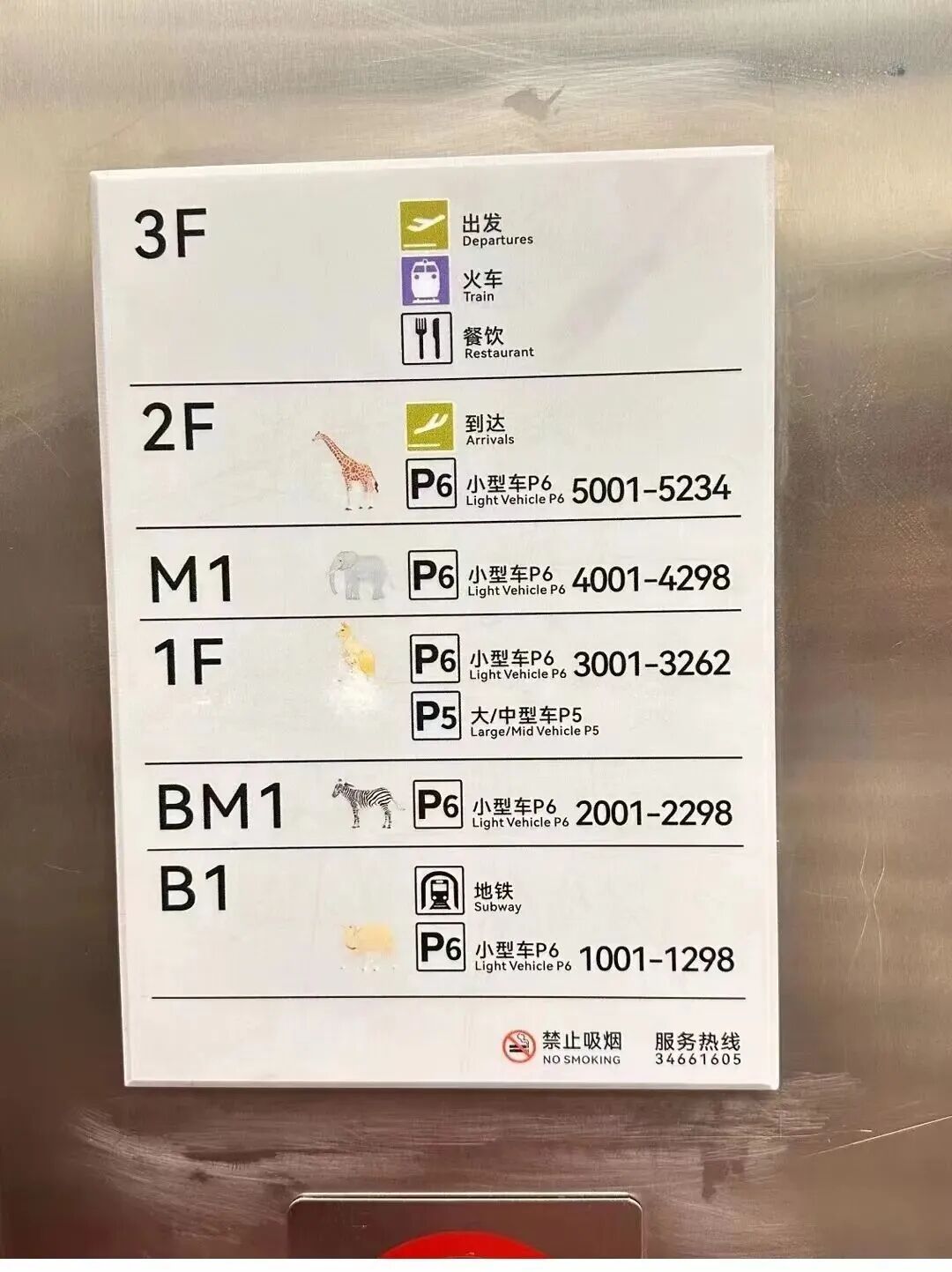 所以来到上海虹桥机场T2航站楼,如果再听到司机打电话告诉你“去长颈鹿层等我”的时候,你就可以根据指引,去停车场找长颈鹿啦~