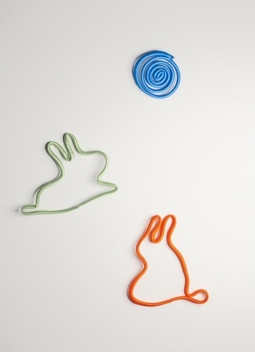 以传统盘扣技艺方式弯折灵动玉兔或皎洁明月,缀以丝带制成别致项链;