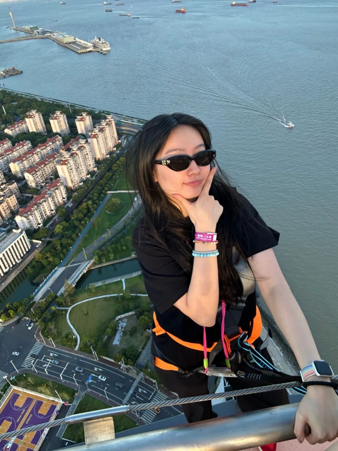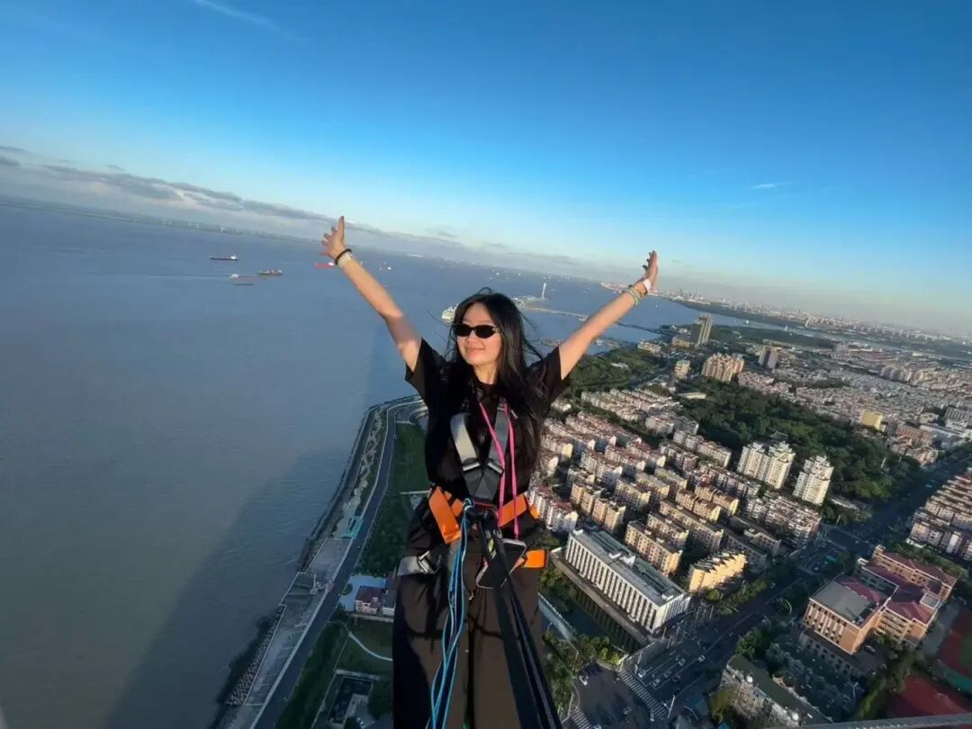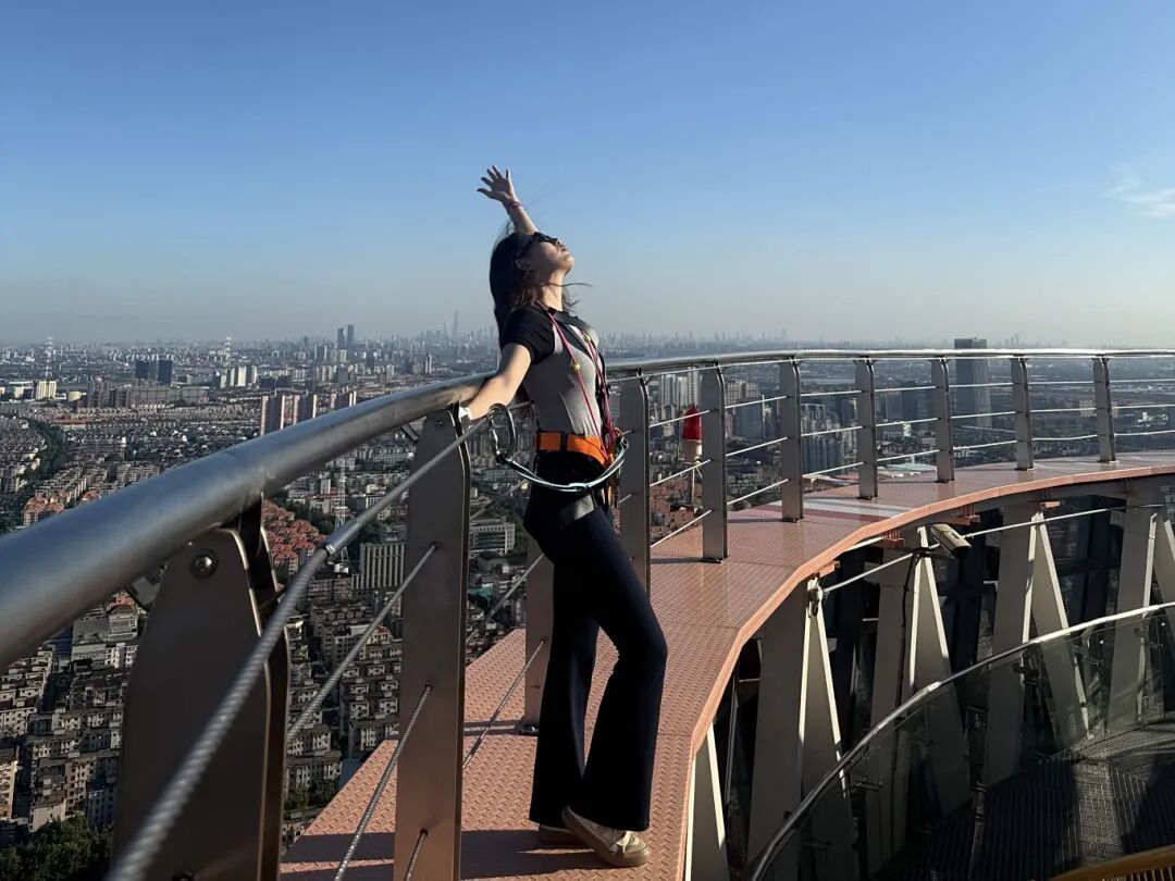 国庆还在担心人挤人吗 上海长滩滨江“定海神针” 主体建筑结构高180米 目前宝山第一高楼 国内首家垂直探索乐园 乐营探索乐园 玩乐项目丰富多彩 覆盖全年龄群体 快来打卡 ↓↓↓ 在宝山之巅云间漫步 180米高空 俯瞰长江入海口 天气好还能远眺3件套 步道分为内圈和外圈 共计近200米的高空漫步路径 内圈相对贴近塔体核心结构 外圈则向外延伸 更具悬空感! 给游客带来不同程度的刺激体验 这种从适应到挑战的阶梯式体验 让游客循序渐进地感受高空冒险的乐趣 身处凌云步道 可以360°全方位感受 长江入海口的磅礴景象 俯瞰巨轮缓缓驶过 小编先替大家试过了 一生要出片的中国人 这不得来试试 记得提前看好天气 天不蓝没法出片