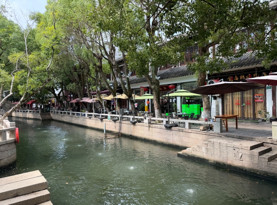 国庆假期,当多数景点人潮涌动,青浦练塘古镇却宛如一处静谧的世外桃源,以其独特的“慢时光”吸引着众多市民前来游玩。 上午9点,漫步于练塘古镇,街道旁鲜艳的五星红旗在微风中飘扬,与古朴的建筑相得益彰,为古镇增添了一抹亮丽的色彩。此外古镇特色美食众多,且远离城市的喧嚣,也吸引了不少市民携家带口而来。 市民吴凤琴一家从上海松江区来到练塘,她表示:“考虑到国庆期间可能到处都是人挤人的情况,而练塘古镇没有过度商业化,于是便带着老人和孩子过来。游览古镇后感觉十分悠闲,还带着孩子去了陈云纪念馆,进行了一场爱国主义教育课。” 初秋的古镇,还未褪去夏季的“外衣”,市河三里塘如一条玉带蜿蜒穿过,岸边杨柳依依,细长的枝条垂落水面,在风中轻轻摇曳。元明清时期的古桥横跨其上,连接着两岸的青石板路,重脊高檐的古宅错落有致,构成了一幅“高屋窄巷对街楼,小桥流水处人家”的独特景致。 据了解,练塘镇已有1100多年的历史。五代十国时,晚唐刺史章仔钧携夫人练氏镇守于此,因多水塘,故名章练塘。这里历史源远流长,文物古迹众多,具有深厚的文化积淀。 国庆假期,不妨走进练塘古镇,在这里放慢脚步,感受小桥流水的宁静,品味历史文化的韵味,品尝特色美食的美味,体验“农文旅商体展”融合带来的独特魅力,邂逅一段难忘的“慢时光”。