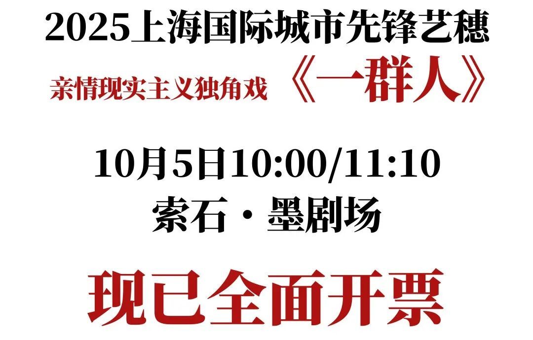 点击图上即可购票 故 事 梗 概 《一群人》是一部以独角戏形式呈现的戏剧剧本,通过一个 25岁左右的男人的独白,探讨了时间、死亡、亲情与人生意义等深刻主题。故事围绕主人公在成长过程中经历的三次重要告别——爷爷和奶奶以及外公的离世展开,穿插了他对自我认知、家庭关系以及人生价值的思考。剧本借由 MBTI人格理论、日常生活场景、社会现象等元素,揭示了人类在面对生命无常时的复杂情感与行为模式。