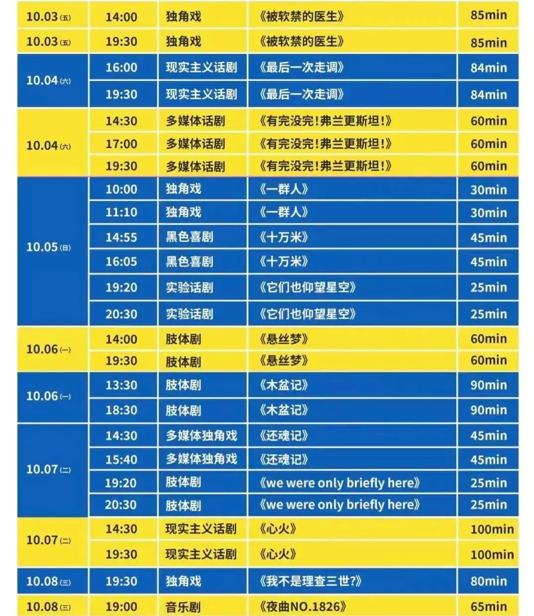 演出时间:10月5日14:55\16:05