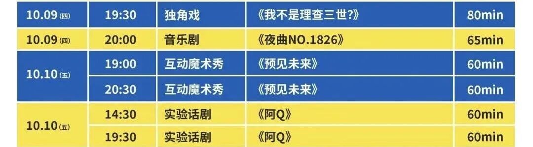 演出时间:10月5日19:20\20:30