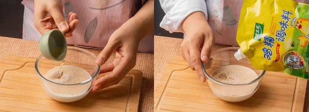 1.在牛奶中加入糖、酵母、玉米油、调味料,搅拌均匀。