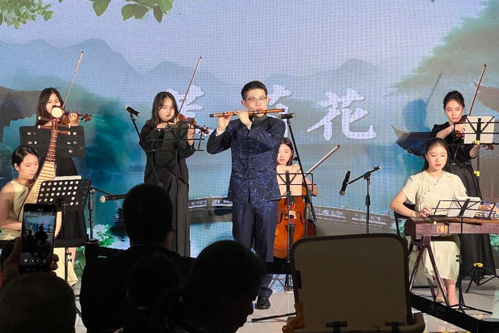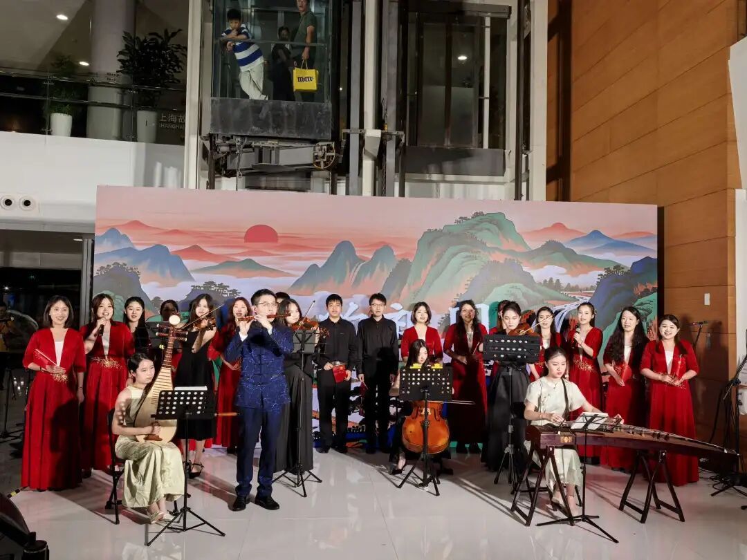 当晚,上海音乐学院的演奏家们在自然博物馆B2中庭,热情演奏耳熟能详的经典爱国主题音乐、国风音乐、民族音乐等,激发观众对自然的崇敬与对祖国的热爱。
