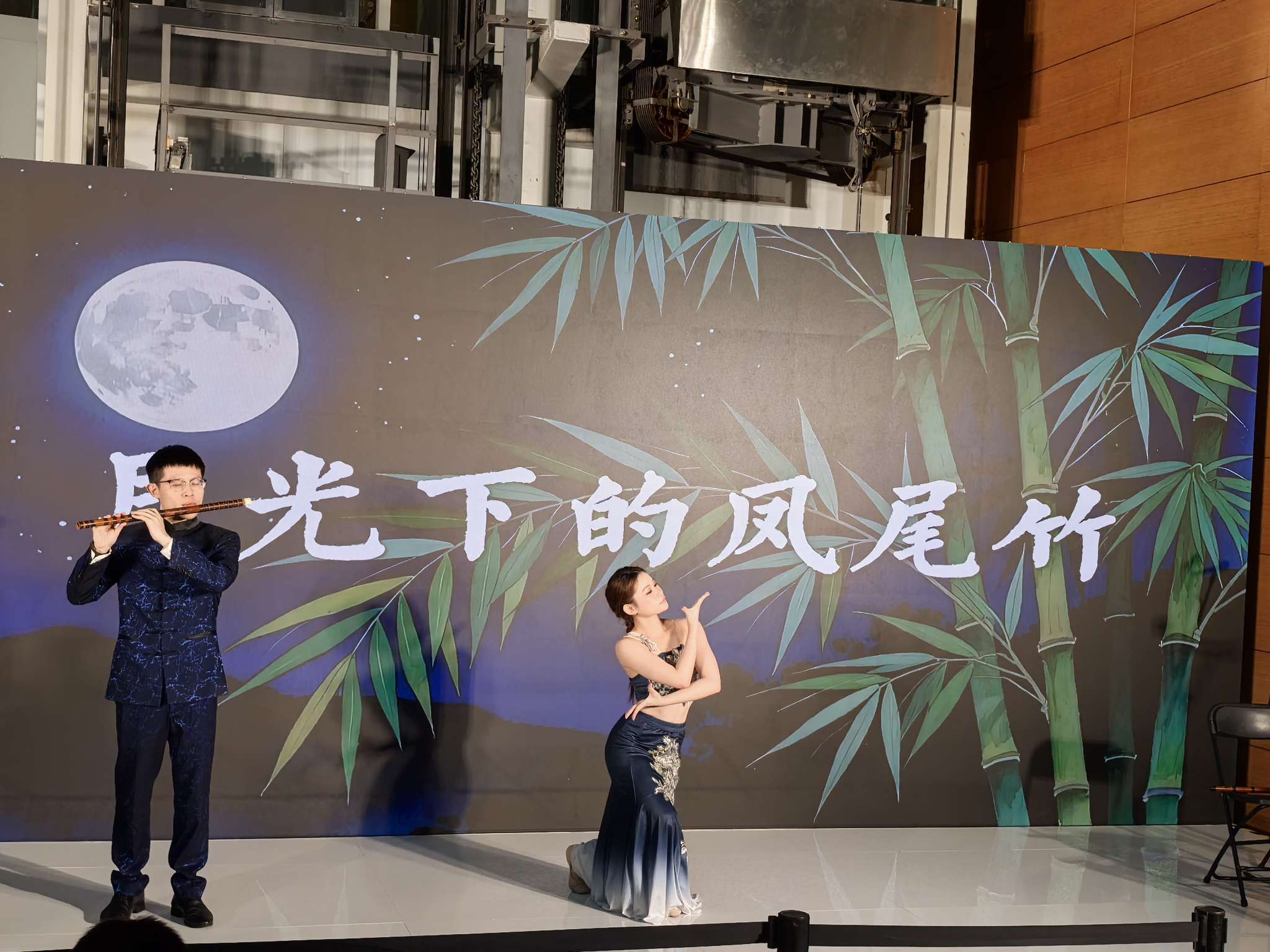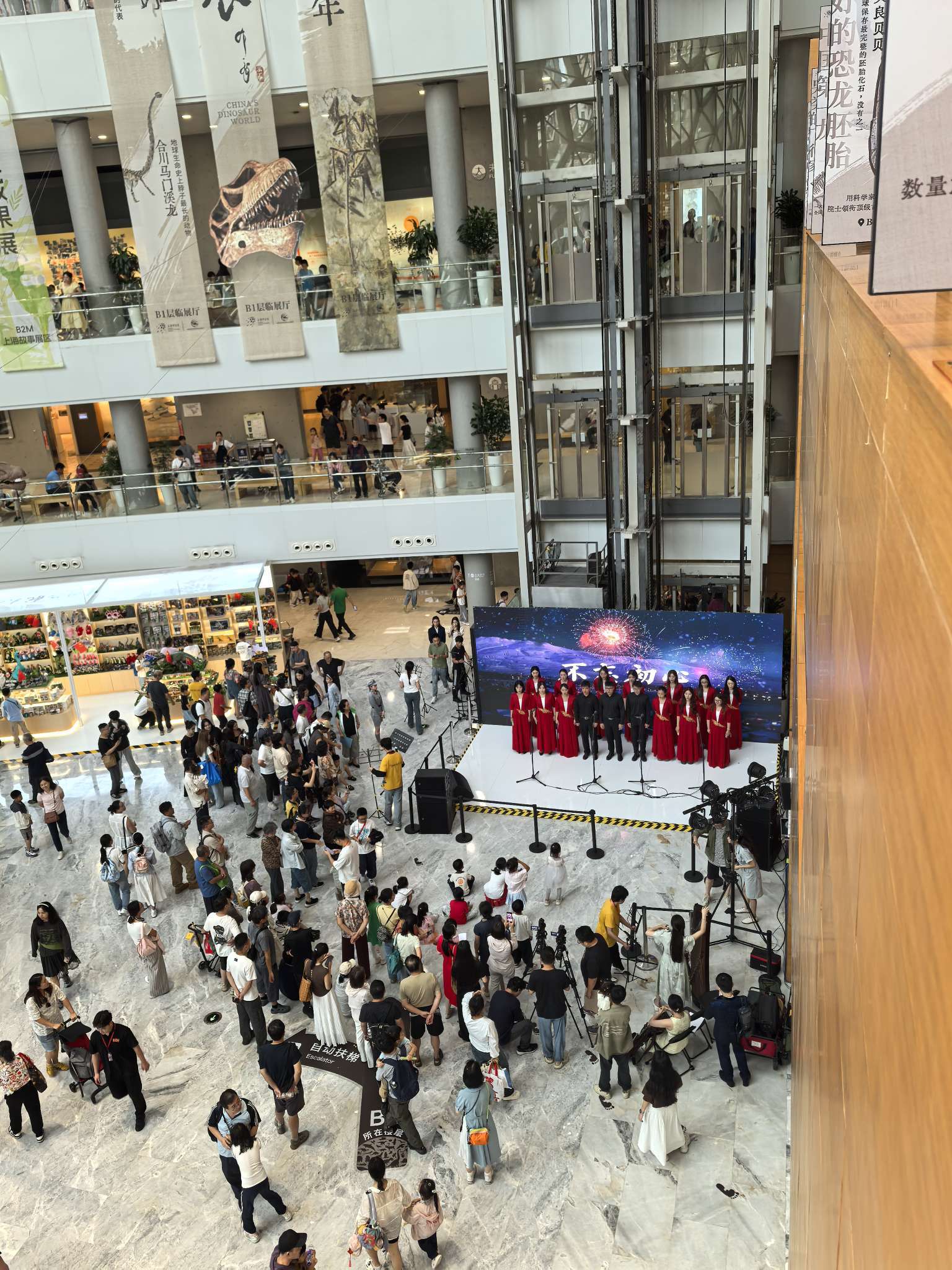 当晚,上海音乐学院的演奏家们在自然博物馆B2中庭,热情演奏耳熟能详的经典爱国主题音乐、国风音乐、民族音乐等,激发观众对自然的崇敬与对祖国的热爱。