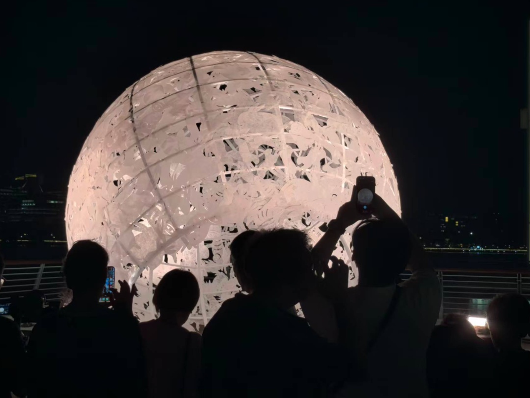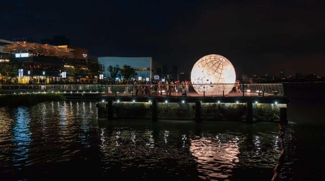 最精妙的设计在于其互动性。当观者环绕这枚带有冰裂纹理的“月亮”行走,或从岸边不同角度远眺,装置会如月相剧场般呈现出“阴晴圆缺”的视觉变化。PSA策展团队阐释其深意:“每一次转角可能遇见的‘满月’,都象征着人们对团圆最本真的向往。这种动态体验,让传承千年的中华‘月文化’变得可感、可触,有了温度。”