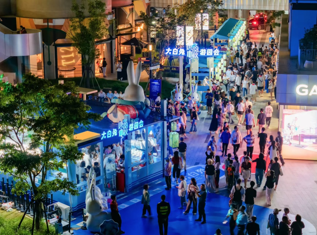 一旁的大白兔快闪店门前,以全新IP形象打造的“宝贝兔的一天·香氛毛绒挂件盲盒”迎来线下首发。将奶糖的味觉记忆与潮玩手办巧妙结合,这一创新举措吸引了大量年轻游客排队购买。正如大白兔品牌经理施黎成所言:“我们希望让大白兔的甜,从舌尖蔓延到心间,成为中秋团圆最甜蜜的具象化载体。”