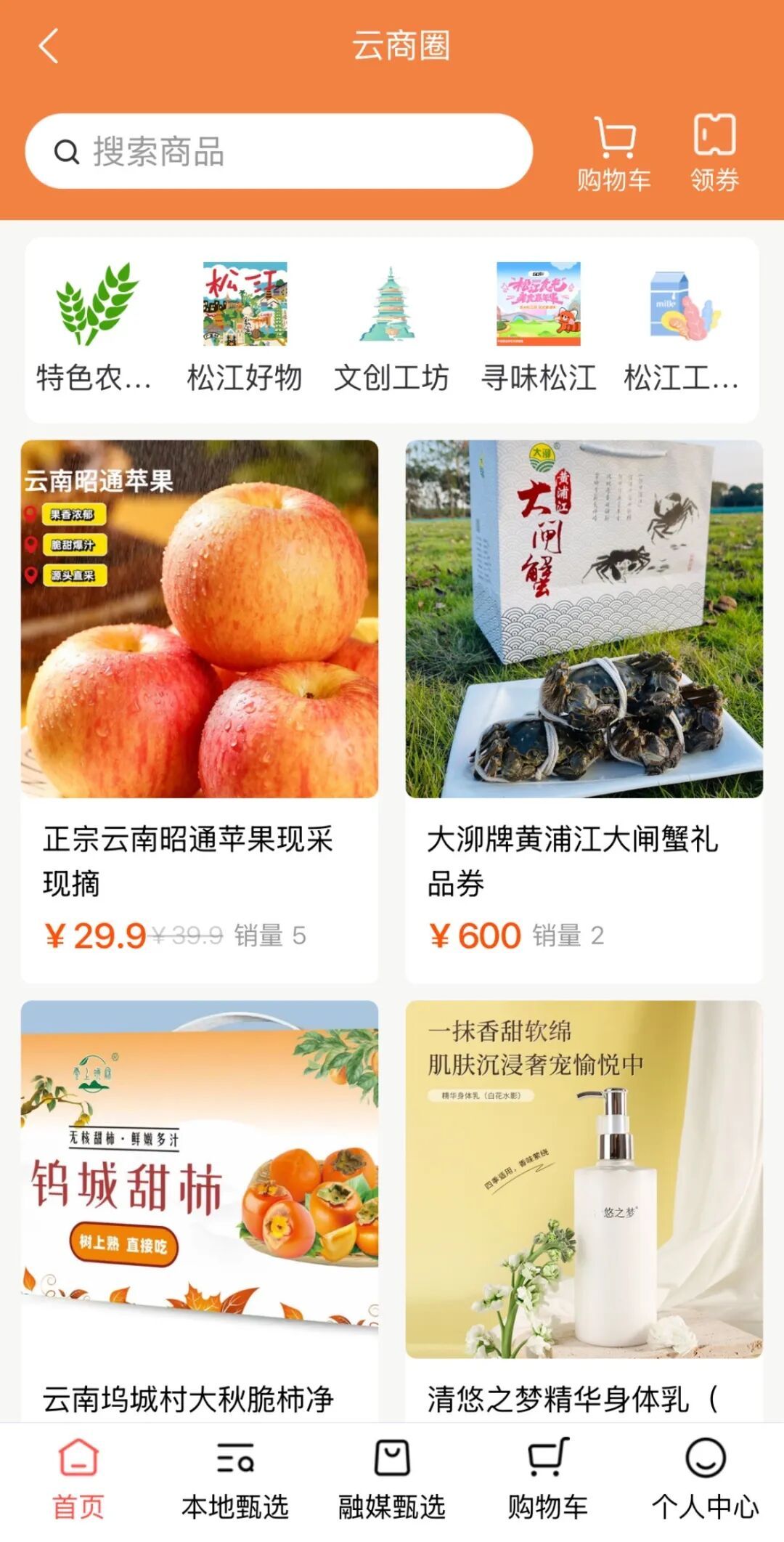 1.打开“上海松江”客户端,进入“云商圈”页面,即可轻松下单。
