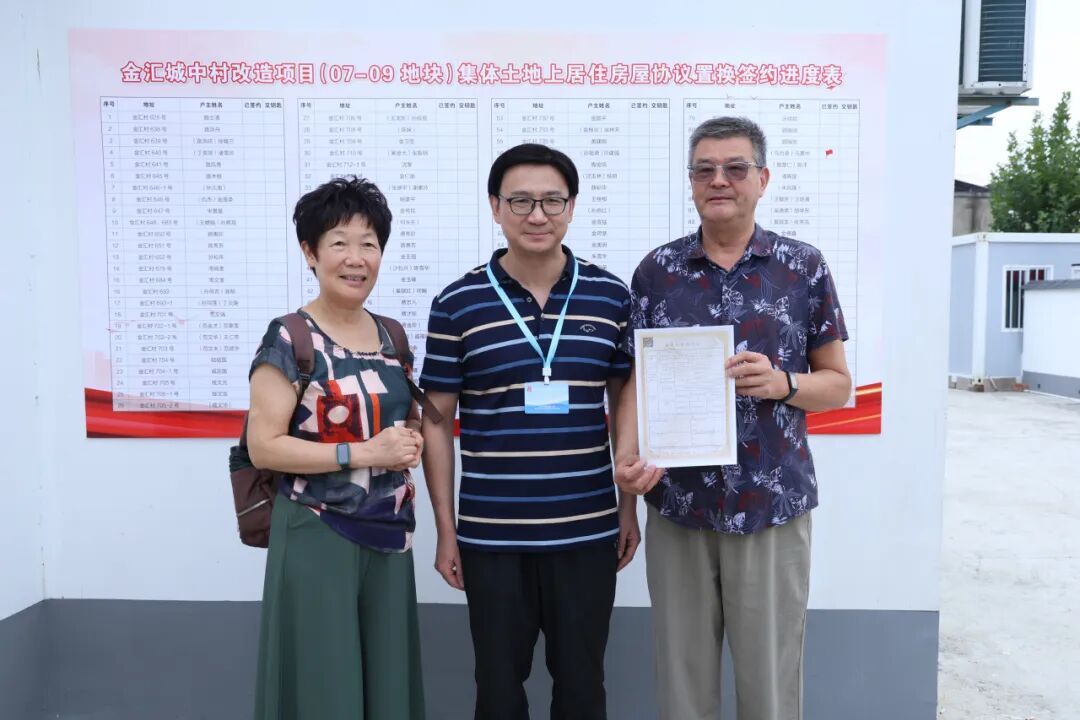 10月3日,金汇“城中村”改造项目集中签约仪式正式启动,奉贤区首张房票也于当日成功发放。 作为上海市规模最大的城中村改造项目,金汇“城中村”改造范围达1102亩,全面践行“留、改、拆”相结合的城市更新理念。奉贤区在此项目中率先试行房票制度,助力居民实现安居梦想。 此次房票安置制度,为居民提供更多元化的选择。选择该方式的居民可凭房票在“房源信息库”中选购商品房,并享受购房优惠与政策补贴等多重福利。这一创新举措不仅拓宽了居民自主选择的空间,也让他们能够根据自身需求灵活定制安置方案,更好满足个性化的居住期待。 上午8点,居民们按照预先分组在指定区域就座,一边翻阅资料,一边与邻里交流,眼中充满期待。工作人员分组引导居民有序进入内场,耐心解答他们在补偿政策与安置方案上的各类疑问,细致说明每项细节,确保每位居民都清楚知晓自身权益。 8点40分,来自金汇西街56弄7号的徐阿姨成为项目首户签约家庭。签约完成后,镇党委书记陶建兴将红色签约标识贴至签约墙,镇党委副书记、镇长骆永则向马老伯颁发了项目首张房票,标志着本次签约工作正式拉开帷幕。 “心情非常激动!”马老伯笑容满面地说道,“工作人员服务非常周到,从政策解读到签约流程,每一步都讲解得很清楚,整个过程公平、公正、阳光、透明。”谈及对金汇镇“城中村”改造项目的期待,他表示:“我在这里住了大半辈子,希望改造后这里能变得更美、更有文化气息,让老邻居们都能享受到更好的生活环境。” 随着首日签约工作的顺利推进,金汇“城中村”改造项目迈出了坚实的一步。未来,这里将建设成为兼具现代生活品质与地方文化特色的宜居社区,助力居民实现从“有所居”到“优所居”的美好跨越。