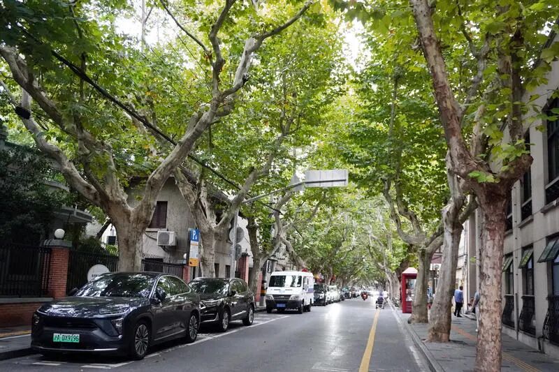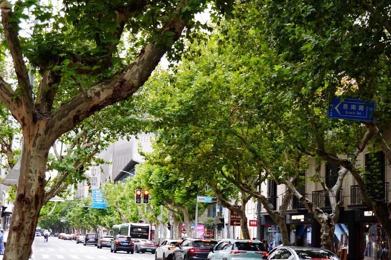 梧桐枝叶交错,为魔都街头撑起一片片绿色穹顶,亦掩映着迷人的都市风景。