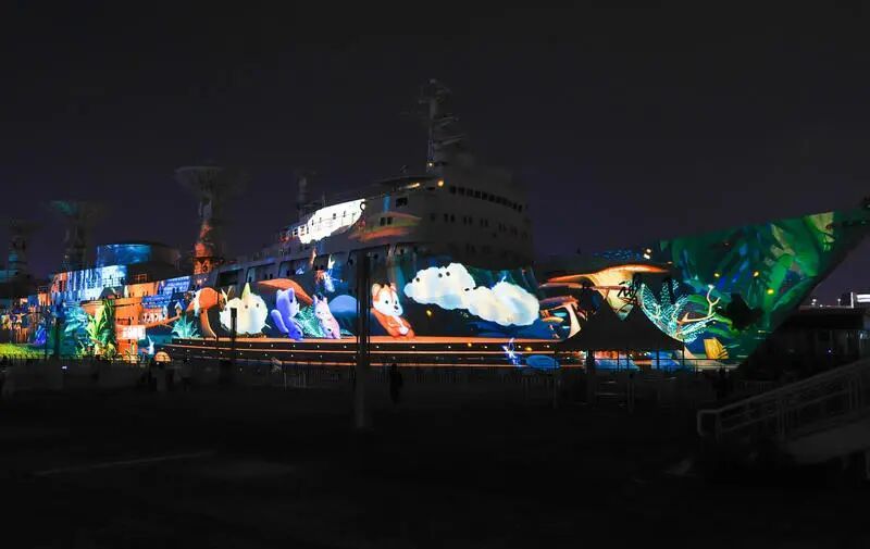 除影像展外,光影节黄浦分会场的另一大看点——“远望1号”森友投影秀也正同期上演。10月1日至6日每晚19:00至20:40,在龙华东路黄浦滨江3号口,这场以“远望1号”船身为载体的视觉盛宴将每20分钟轮番上演,以流光溢彩的投影叙事,为观众带来沉浸式的感官体验。