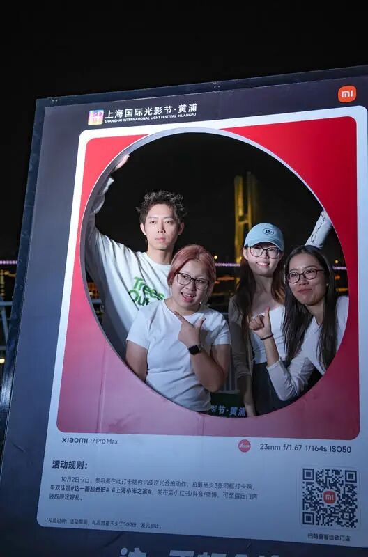 本次“这一面,超合拍”小米城市逆光影像展于10月2日至10月7日持续开放。展览依托浦江两岸的独特景致,巧妙地将手机摄影作品融入城市公共空间,集中展现一系列在逆光环境下捕捉的动人瞬间。现场观众不仅能欣赏到光影交错下的城市美学,还可亲身参与互动,在指定点位打卡合拍,体验手机在挑战性光线下出色的成像品质。