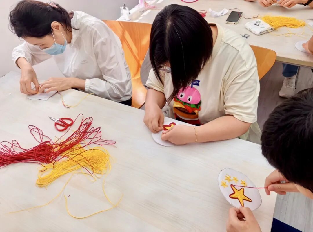 欧阳路街道则以“绳系国旗”为主题,组织阳光之家学员制作立体绳贴画。现场,随着学员们手中的黄色棉线在底板上逐渐被盘成大小五星,再用红色棉线进行勾边,一枚枚立体的绳贴国旗便展现在大家眼前。学员们也在亲手制作中,深化了对国家象征的敬意。