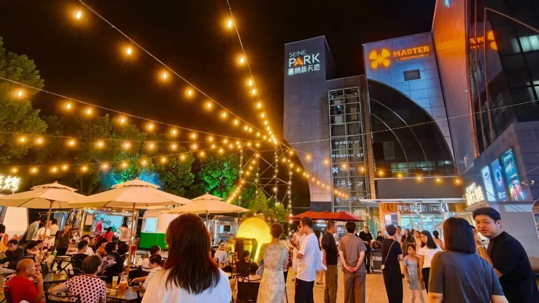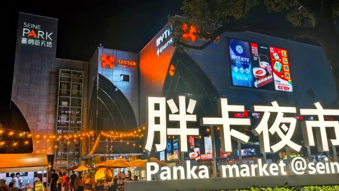 当夜幕降临,塞纳新天地的另一番景象在音乐声中苏醒——“胖卡夜市”开市了。