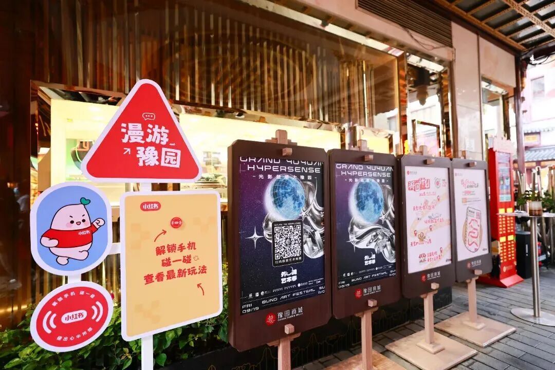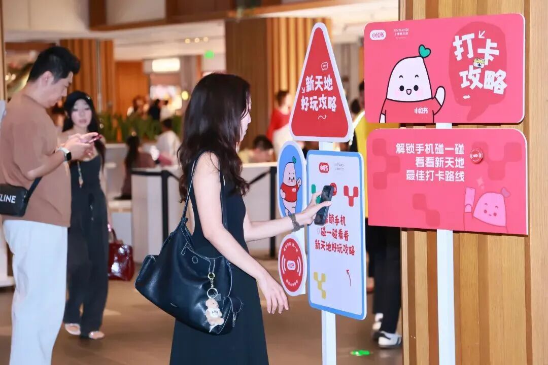 国庆长假伊始,有一些红色的身影悄悄出现在黄浦区,在豫园、上海新天地等知名景点迎接来自全国各地的游客的到来。这些一人高的立牌站立在景点的各个出入口,指引游客“解锁手机碰一碰”,了解现场的活动和攻略。立牌上的箭头全部都指向一个直径5厘米左右的红色小圆点,这就是小红书全新推出的“小红点”。