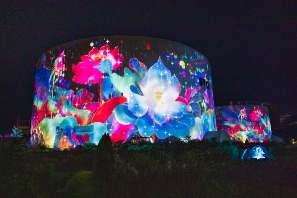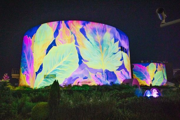这个秋天,第二届上海国际光影节徐汇分会场如约而至,徐汇滨江再次被光影点亮。作为全场重中之重的光影点位——油罐艺术中心的光影展演不仅重磅回归,更迎来焕新升级。曾经的工业巨罐摇身一变,化身为盛放自然的艺术舱体,9月19日至10月8日每天18:00—23:00,邀你步入这片夜间限定的“光影花园”,与自然来一场“双向奔赴”。