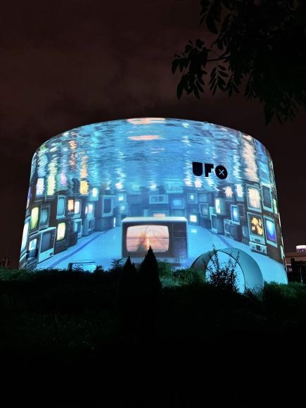 《缸中之境》将整个油罐化为一个巨大的“生态水缸”,无数电视荧幕中闪烁着自然影像,如同在一卷旧磁带里,听到了属于大自然频道的信号,“梦核感”拉满。