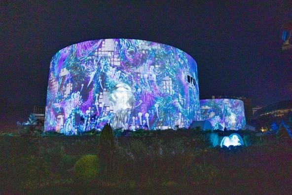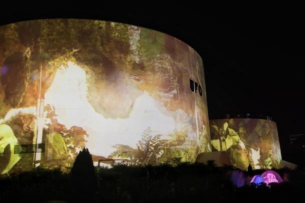 走向油罐,便来到了汇聚全球艺术家灵感的“自然剧场”。油罐艺术大赏《共生之茧》通过五部风格迥异却又具有内在共鸣的光影作品,探讨人与自然和谐共处的可能性,构建出一场跨越感官、空间与文化的对话。巨大的罐体化为流动的幕布,上演充满生命诗意的视觉狂想。