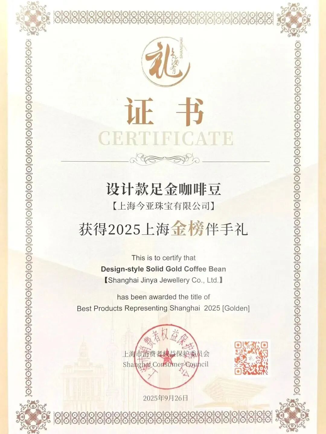 设计款足金咖啡豆荣膺“2025上海金榜伴手礼”