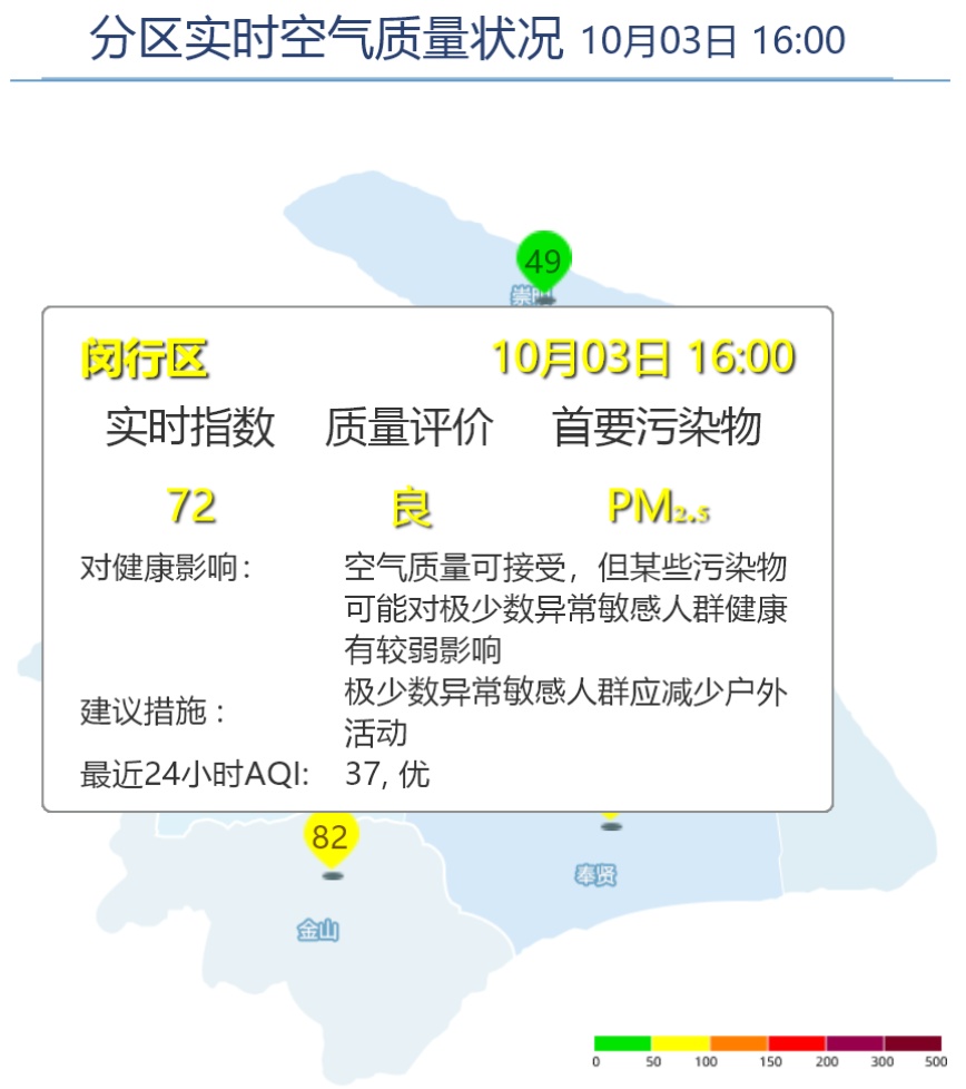 闵行区AQI为72,良。