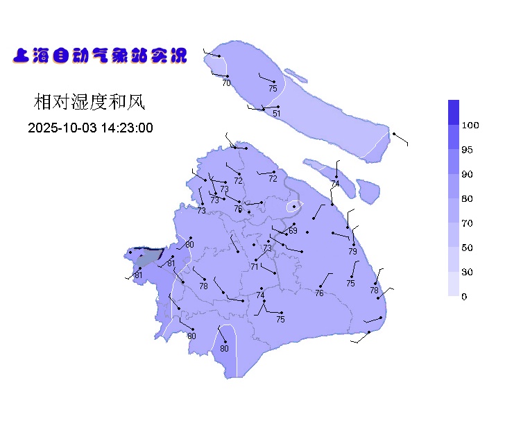 假期第三天,阴云-阳光-阵雨“混搭”。降水零散,雨量不大,主要出现在南部地区。气温表现稳定,全市最高气温在28~31℃,市区徐家汇站29.8℃。但空气湿度大部分时间都在70%以上,体感难免潮湿闷热。