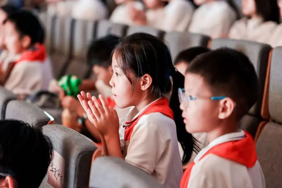 台下的孩子沉浸于那段峥嵘岁月,深受触动。“情与法的冲突带来思想风暴,‘黄土地里长出来的法’萦绕心头,这堂课比书本上写得更加生动震撼!”华政附校八年级学生谭雨辰感叹道。先是去年在附校校园里观看了片段演出,如今又来到高校首次沉浸式观看全剧,五年级学生姚钰淇直言,自己从其中感受到的震撼与启迪更加深刻了。“哥哥姐姐们的演绎不仅是表演,更是与历史先驱的跨时空对话,让我们感受到了红色法治基因的传承。”她动情地表示。