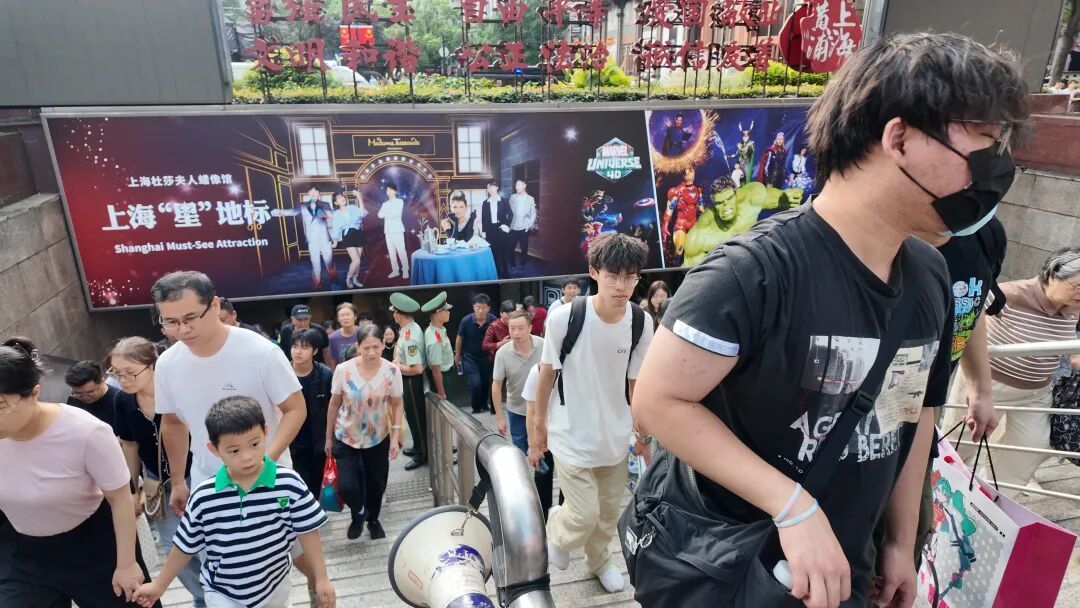 “台阶处请勿停留,请向前走。”在西藏中路地道口,民警的温馨提醒声此起彼伏。从2号线人民广场站出入口的人民广场下沉式广场穿过西藏中路地道,便是南京东路步行街的起始段。每天下午起,这里便成为人流的汇聚点。记者在现场看到,黑压压的人群不断从地道通过,为了避免进出人群对冲,黄浦公安分局南京东路派出所的民警在地道通往步行街的方向设置了近20米的延伸围挡,将楼梯划分为两进两出,确保人流有序通行。同时,每个出入口都有警力驻守,不断提醒市民游客注意安全,不要驻足拍照或看手机。此外,武警与民警遍布整条步行街,多重安保措施让游客倍感安心。
