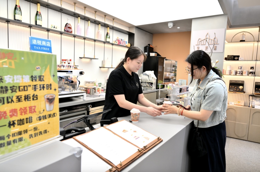 这还不够!南京西路、苏河湾、大宁商圈内的各大商场百货,通通亮起“额外优惠”的绿灯!比如,佩戴手环,去CP静安服务台便可领到一瓶饮料,去静安大悦城部分门店就能享受全单8折起。