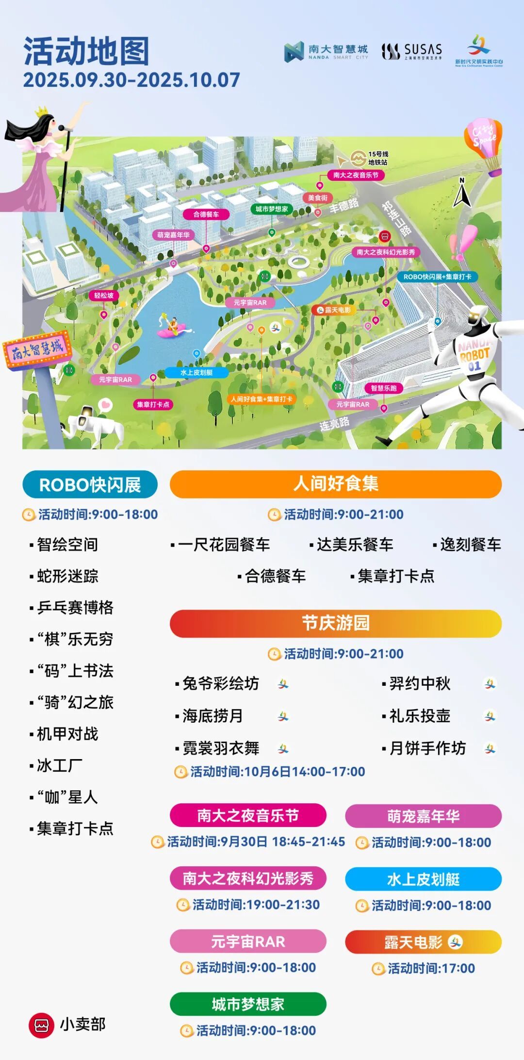 秋意渐浓,热情不减。9月30日至10月7日,作为2025上海城市空间艺术季宝山展区,南大智慧城在这个金秋假期持续释放科技、艺术与生活的多重魅力,为市民呈现一场融合未来感与烟火气的城市盛宴。活动现场氛围热烈,前来打卡的市民络绎不绝,沉浸式体验科技与生态交织的美好时光。 走进ROBO快闪展区,八大互动项目持续点燃科技热情。大疆机甲对战区人气爆棚,欢呼声与机械声交织;机械臂乒乓对练吸引不少市民一试身手,体验人机协作的乐趣。咖啡机器人与冰淇淋机器人前排起长队,贴心服务让科技融入日常,更添生活温度。AI素描、下棋与书法机器人等创意互动区同样热闹非凡,市民在轻松参与中收获独特的“科技礼物”。 “宠物嘉年华”作为最受欢迎的互动区域之一,每天都在别开生面的“萌宠邂逅机甲”。宇树机器狗成为全场焦点,它们不仅展示了精准的跳跃、翻滚等高难度动作,更与现场的宠物狗伙伴们展开了友好互动,这场跨越物种与形态的趣味互动,引得围观家庭阵阵欢笑与掌声,诠释了科技与生命和谐共处的未来图景。 夜幕降临,以“时空之境、智慧共生”为主题的科幻光影秀再度点亮南大夜空。标志性建筑“科创之门”在裸眼3D和激光雕刻技术的映衬下,化身为流动的未来画卷,6000平方米的巨幕在夜空中流光溢彩,演绎“科创改变生活”的震撼场景。依托300亩中央公园的天然舞台,湖水、植被、雾森与灯光巧妙交织,市民在轻松游园间,既能感受科幻光影的视觉冲击,又能呼吸绿色空间的清新空气,体验感十足。 “人间好食集”持续升温,烟火气中洋溢着欢声笑语。咖啡、披萨的香气弥漫夜空,汉服展演与文明知识互动区人头攒动,既有国际都市的时尚气息,又不失传统文化的独特韵味。市民在这里不仅享受美食,更在互动体验中感受文明新风,共同营造开放共享的城市氛围。 绿色生态赋予城市生命力。南大智慧城在综合整治和整体开发中,坚持“绿色低碳、蓝绿交织”的理念,规划绿地面积占比超过43%,中央公园正是这一理念的生动体现,为市民提供了亲近自然、感受科技的艺术空间。 产业创新注入发展动力。依托宇树科技、细胞产业共性关键技术国家工程研究中心等重大项目,南大智慧城已成为人形机器人、生命科学等产业的集聚高地。光影秀中裸眼3D与激光雕刻的震撼效果,让创新成果以可见可感的方式走进公众生活,彰显宝山建设上海科创中心主阵地的硬核实力。 全民共享营造社会凝聚力。在这里,科创不再是遥远的概念,而是融入了每一个公园体验的细节。从白天到夜晚,家庭携手漫步、青年互动打卡、儿童沉浸于光影乐园,城市空间真正成为全民共享的文化客厅。这种全民参与、共同体验的热烈场景,正是南大智慧城在“艺术融入城市、文化赋能发展”上的生动实践,让市民在畅游中真切感受未来城市的气质与温度。 2025上海城市空间艺术季(宝山展区)讯息 时间:2025年9月30日-10月7日 地址:南大智慧城 停车场及交通指南 乘坐公共交通的游客可以选择↓ 轨道交通: 15号线“南大路站”3号出口向南300米