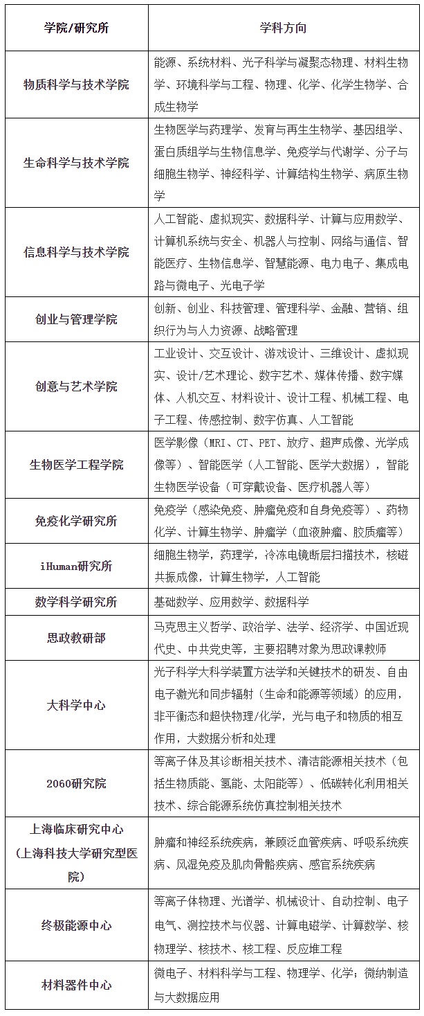 想了解更多信息,请登录学校网站www.shanghaitech.edu.cn,也可直接联系官网各学院、研究所、部门咨询相关招聘事宜。
