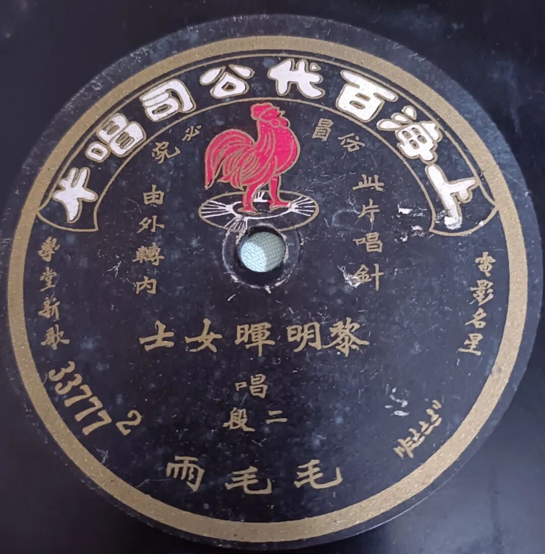 右:《毛毛雨》有中国第一首流行歌曲之誉,此图为1927年12月百代首版唱片的片芯