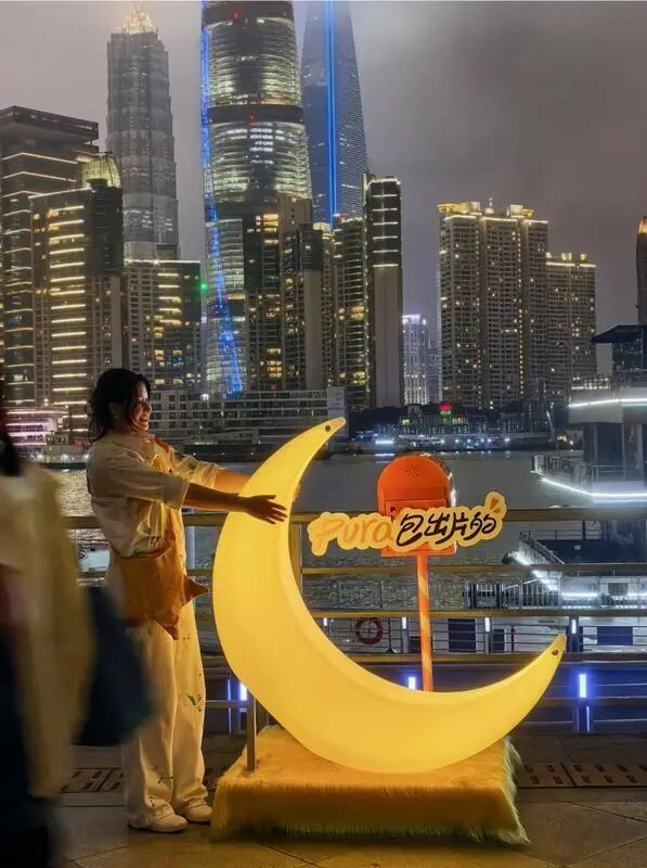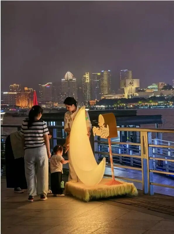 活动现场,艺术家将月光以独特形式 “具象化”—— 或化作光影装置,或成为可手持的 “月光道具”。市民们纷纷参与互动,有的与 “月亮” 合影留念,有的用手机记录下外滩夜色与 “月光” 交融的美好瞬间,原本遥不可及的月亮,此刻仿佛走在了上海的街角,触手可及。