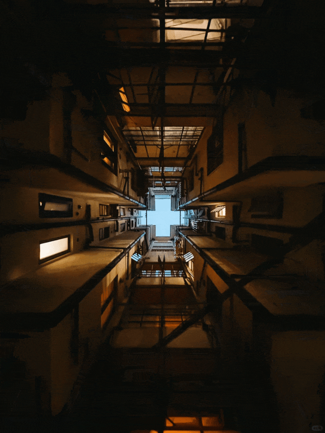 1️⃣ “十字天空” 取景处:瑞金一路有三个门洞入口,从任意一个门洞进入走到天井抬头仰望,都能看到独特的 “十字天空” 造型,这是卜邻公寓最具特色的拍照点。在拍摄时,可以选择不同的角度和时间,利用光影效果,拍出更具层次感和艺术感的照片。