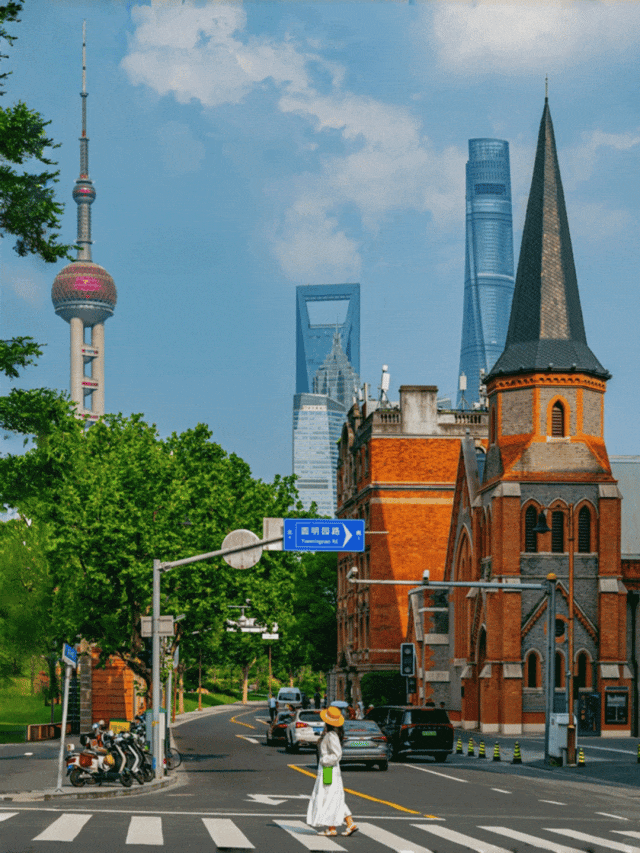 1️⃣ 九江路与四川中路交叉口:这里人少景正,站在路中间就能把东方明珠框进镜头,搭配道路两侧的复古建筑,拍照非常有感觉
