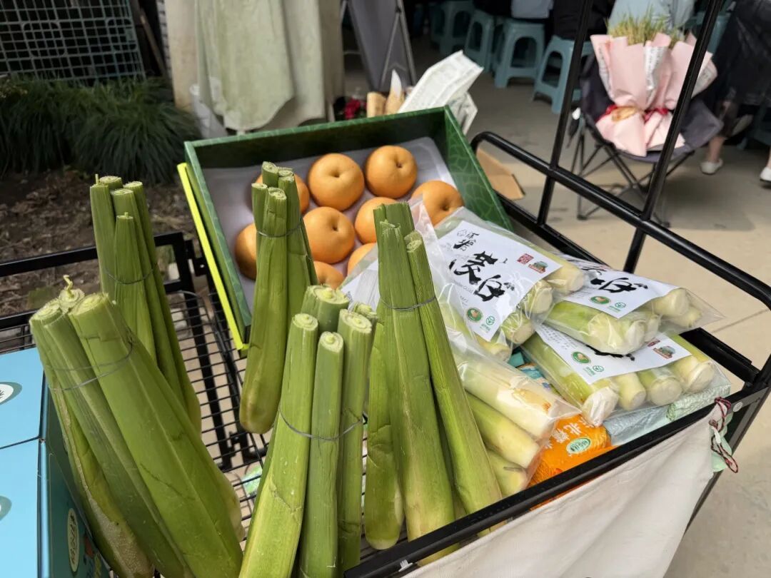 除了紧张激烈的赛事,现场还特别设置了农产品展示消费区,展示了来自练塘当地的特色农产品,有香气四溢的阿婆粽、鲜嫩的茭白以及颗粒饱满的稻米,供大家消费选购。