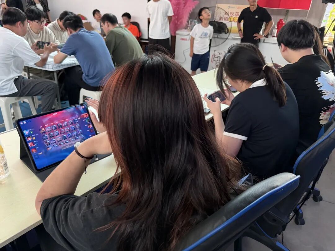 比赛现场,来自青浦区的12支参赛队伍同台竞技,现场氛围热烈,秩序井然,选手们紧盯手机屏幕,指尖在屏幕上飞速跳跃,时而因一波精彩团战握拳鼓劲,时而为关键操作失误轻声复盘,对战选手操作的“极限丝滑”、团战的“极限反转”,让现场观赛群众不时发出阵阵欢呼。