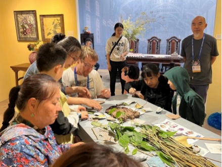 外国友人在闵行非遗文化展示馆体验非遗制作活动