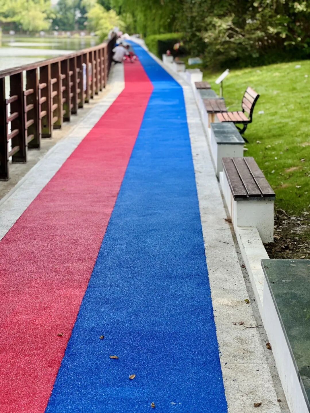 了解到居民的迫切需求后,社区党总支积极申请项目资金,为步道“量体裁衣”进行翻新。针对不同区段的特点,维修采用“分段铺设方案”:在S型步道部分用沥青铺设,其余步道部分用塑胶铺设,巧妙避开塑胶材质可能因雨水浸泡导致开胶、破裂的情况,以延长步道使用寿命。