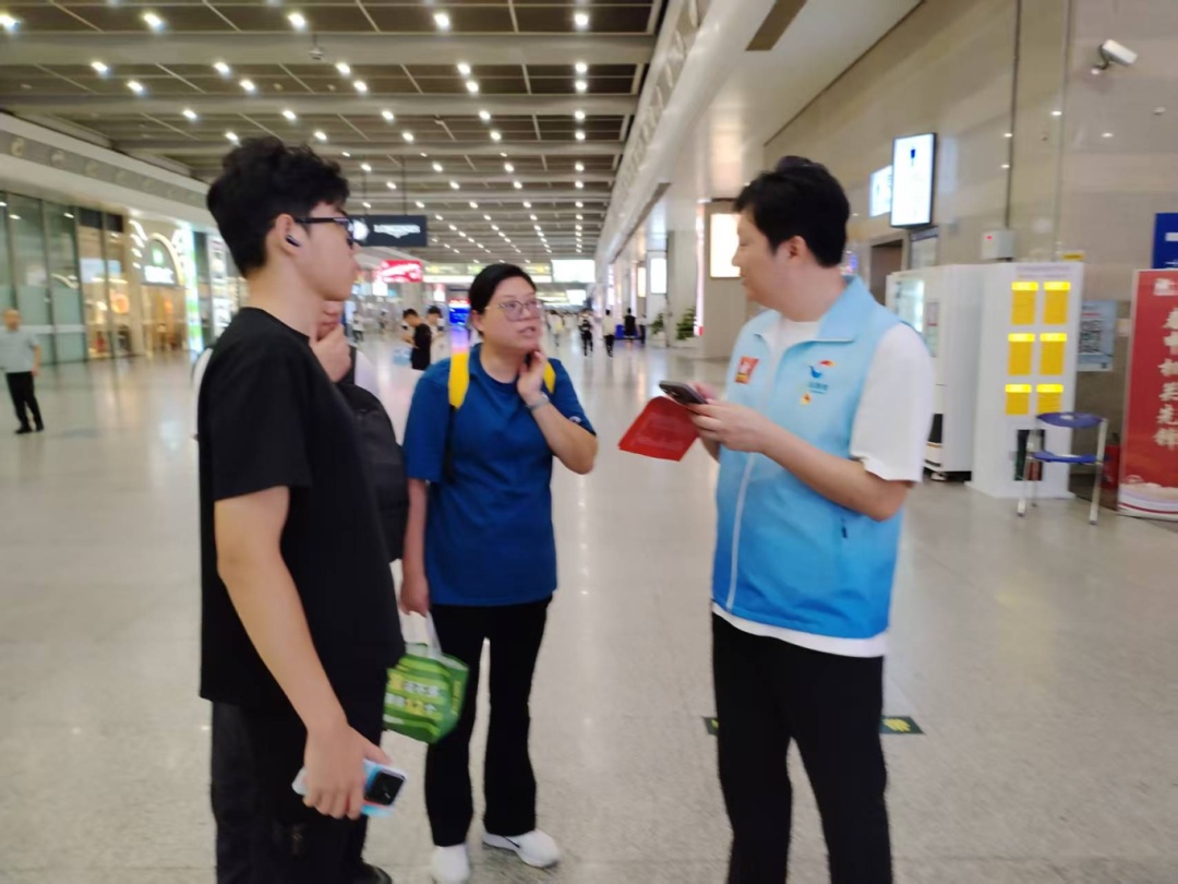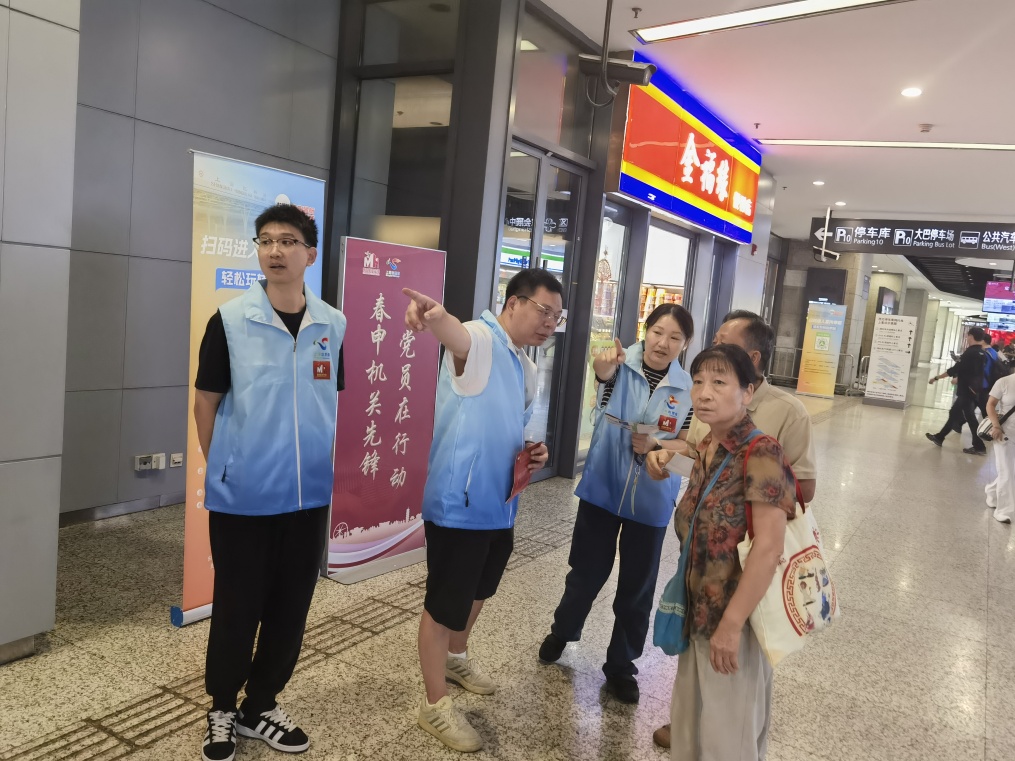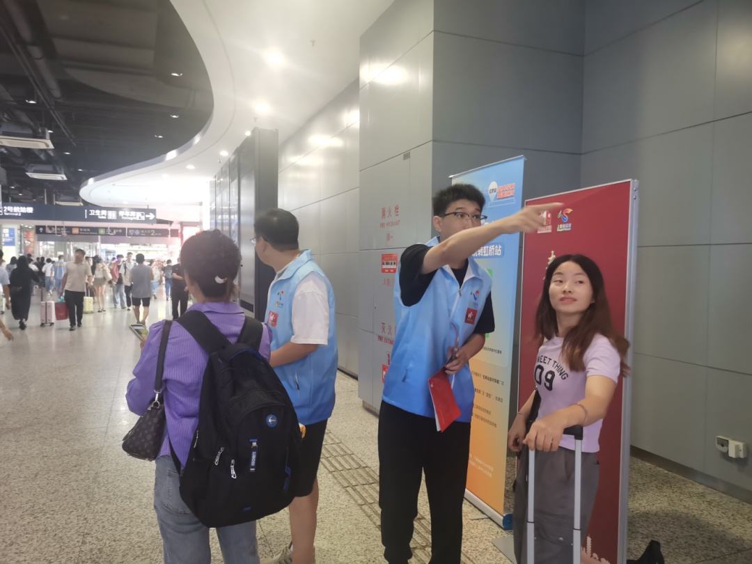 为全力保障国庆期间虹桥综合交通枢纽平稳有序运行,区区级机关工作党委、区委社会工作部等单位持续组织开展志愿者服务,闵行区区级机关志愿者坚守岗位,热忱接待,用他们的实际行动和满腔热情,温暖八方旅客。