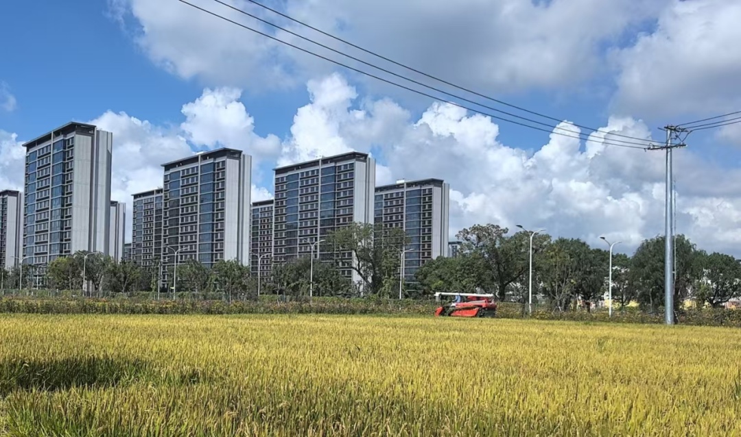 值得一提的是,今年是颛桥中心村稻米时隔20年的首次回归,标志着这片土地从“城中村”向“田中城”生态蝶变迈出关键一步。作为闵行区政府与上海地产集团合作打造的都市生态示范区,中心村生态园保留了1800多亩农业用地,融合生态居住、农业体验与休闲文旅,让城市居民在自然中找回田园乐趣。