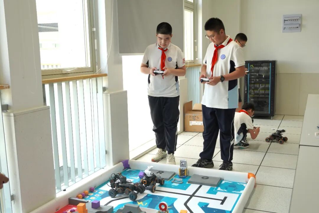 备赛中最磨人的就是调试自动程序。“一个小数点或者毫秒级的延迟,都可能导致机器人跑偏或动作失败。我们常常在机房一待就是半天,反复修改代码、测试车辆,直到它‘听话’为止。”张浦珑智说道。而到了赛场,挑战才真正开始。张浦珑智对“叠方块”环节记忆犹新:“那真是考验心态,手稍微一抖,方块就可能掉下来,前功尽弃。我和朱思涵必须高度默契,一个人控制移动,一个人负责精准夹取,几乎不敢呼吸。”