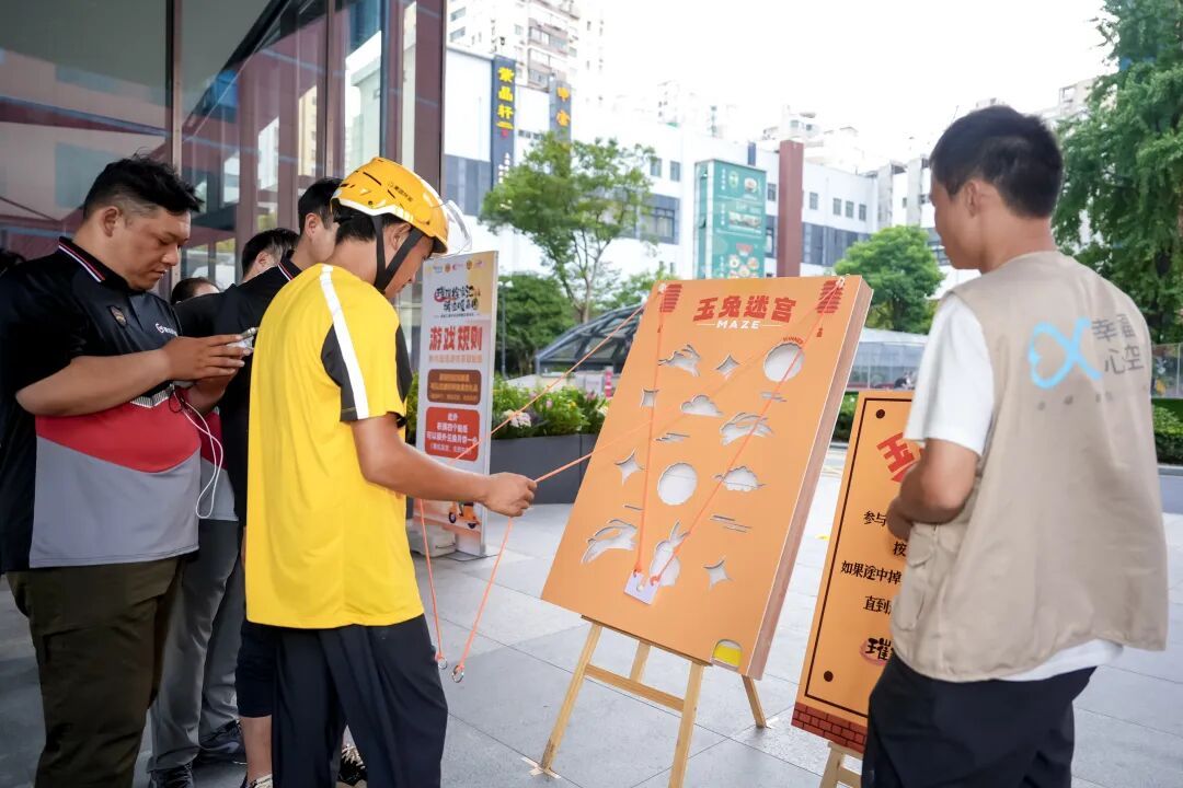 在活动中,外卖骑手们暂别奔波的压力,在欢乐的游园游戏中享受片刻的欢愉,并通过收集贴纸道具领取实用礼品和中秋礼盒。活动现场欢笑声不断。