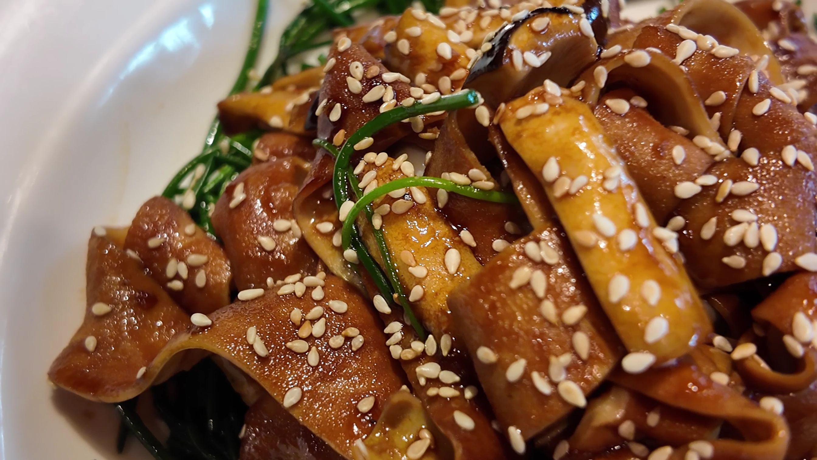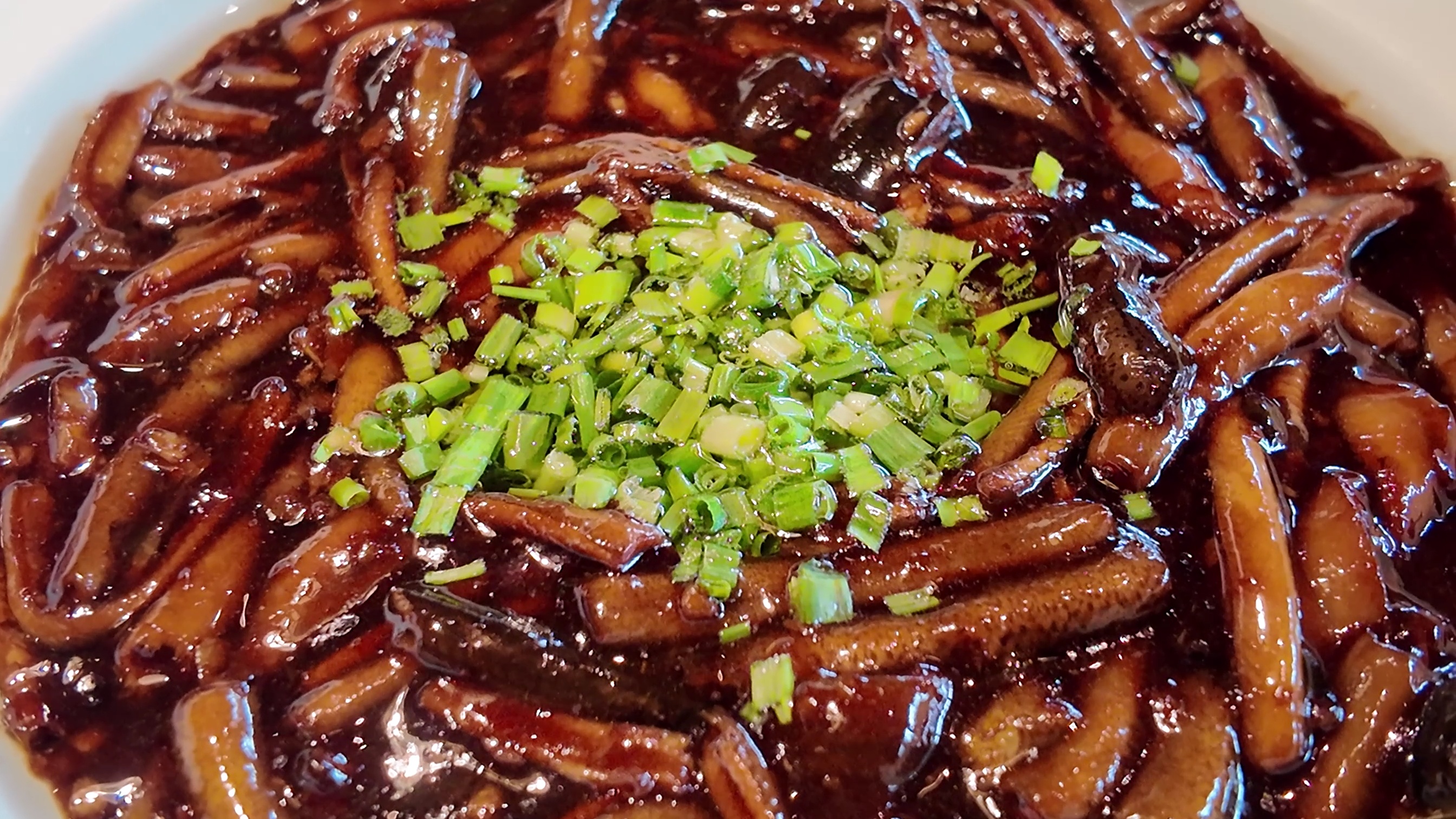 上海老饭店第五代非遗传承人、厨师长罗玉麟介绍:“鹅肠其实也是季节性的菜品,我们用的是广东的狮头鹅肠,融合了本帮技法的改良。广东那边常见的是卤水做法,而我们采用的是本帮化的微改良,做成了偏红烧口味,带着浓油赤酱的风味,让它更富有上海特色。”